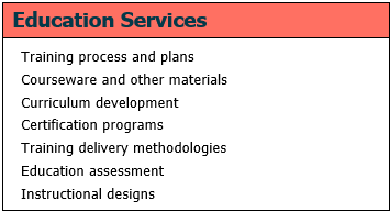 We can help with other educational services that support the entire range of training and documentation needs. State-of-the-art training has become an absolute necessity if today's companies are to remain competitive in their chosen markets. Many companies with training organization responsible for educating employees often like to bring in contract instructors to deliver education is areas of expertise not found within the company, or to give people exposure to fresh ideas. Often, this can be a very affordable alternative to hiring someone with the desired background. Goals of lifelong learning have proven to increase productivity and quality. We are all in a constant learning mode and want to work for companies that foster education. |